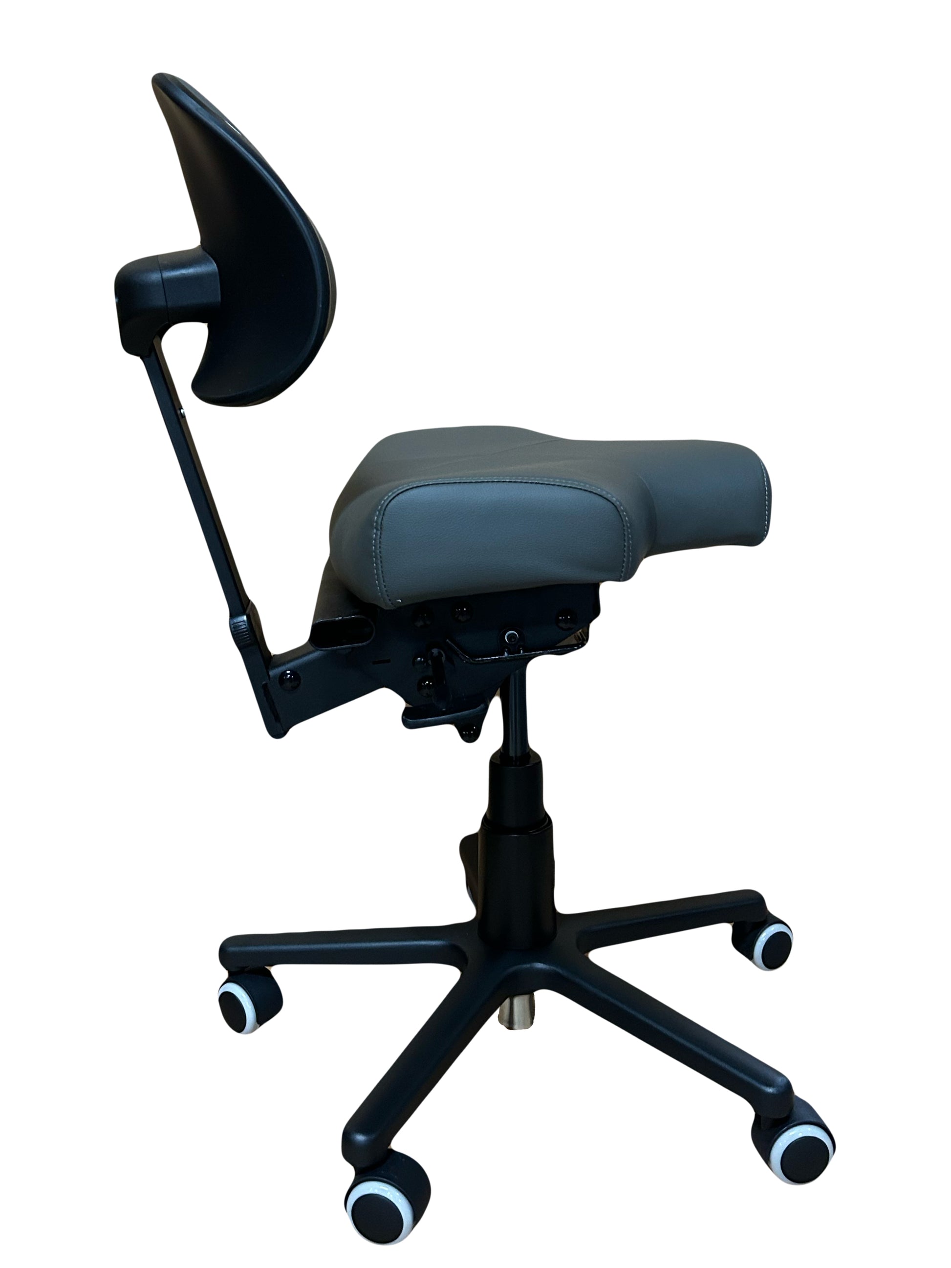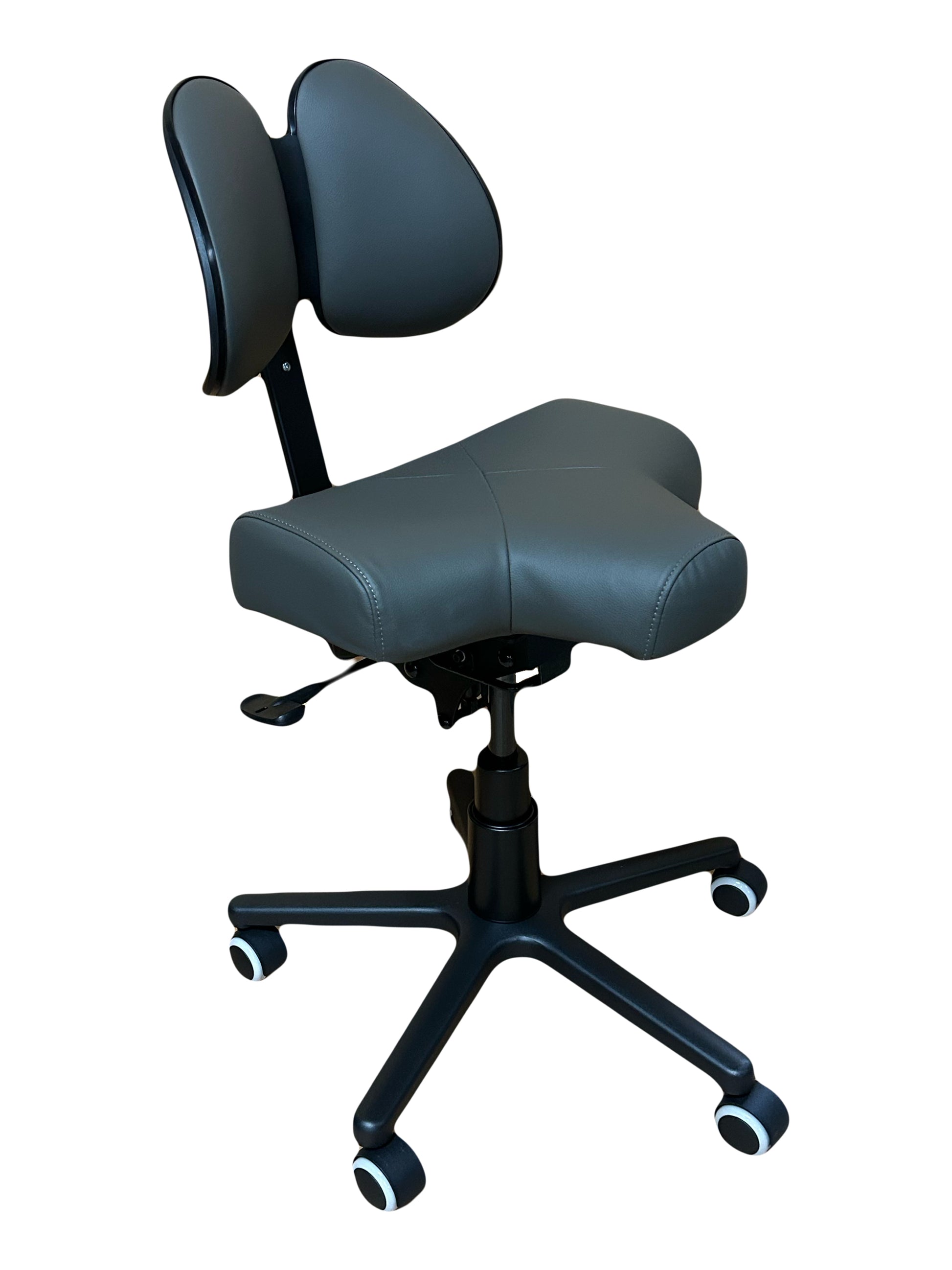 Our newest addition to the RGP operator and task chair line, the 400-X model adds a new option for those who may not like a large and deep seat pan, but don't want to go full saddle. The seat is designed to drastically reduce the pain normal chairs cause in the back of the legs. It's short seat makes it easy to get in close. The chair comes with our standard RGP active seating hydraulic mechanism, and a double padded lumber support that hits on both sides of the spine creating the ultimate blend of support and comfort. The chair comes built with our standard (medium) sized cylinder. Arm supports can be added individually or as a set.